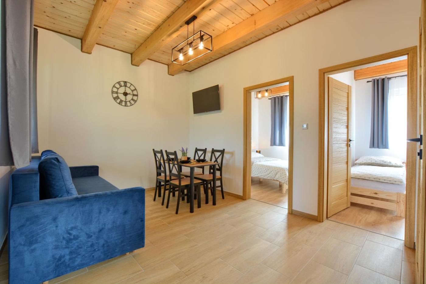 Dom z 2 sypialniami. Boasting a private entrance, this holiday home features 1 living room, 2 separate bedrooms and 1 bathroom with a shower and a hairdryer. Guests will find a refrigerator and a microwave in the kitchen. The holiday home also comes with a barbecue. Featuring a terrace with mountain views, this holiday home also features a dining area and a flat-screen TV. The unit has 4 beds. Dom wakacyjny - 6 osobowy. Powierzchnia pokoju ok.: 35 mkw.