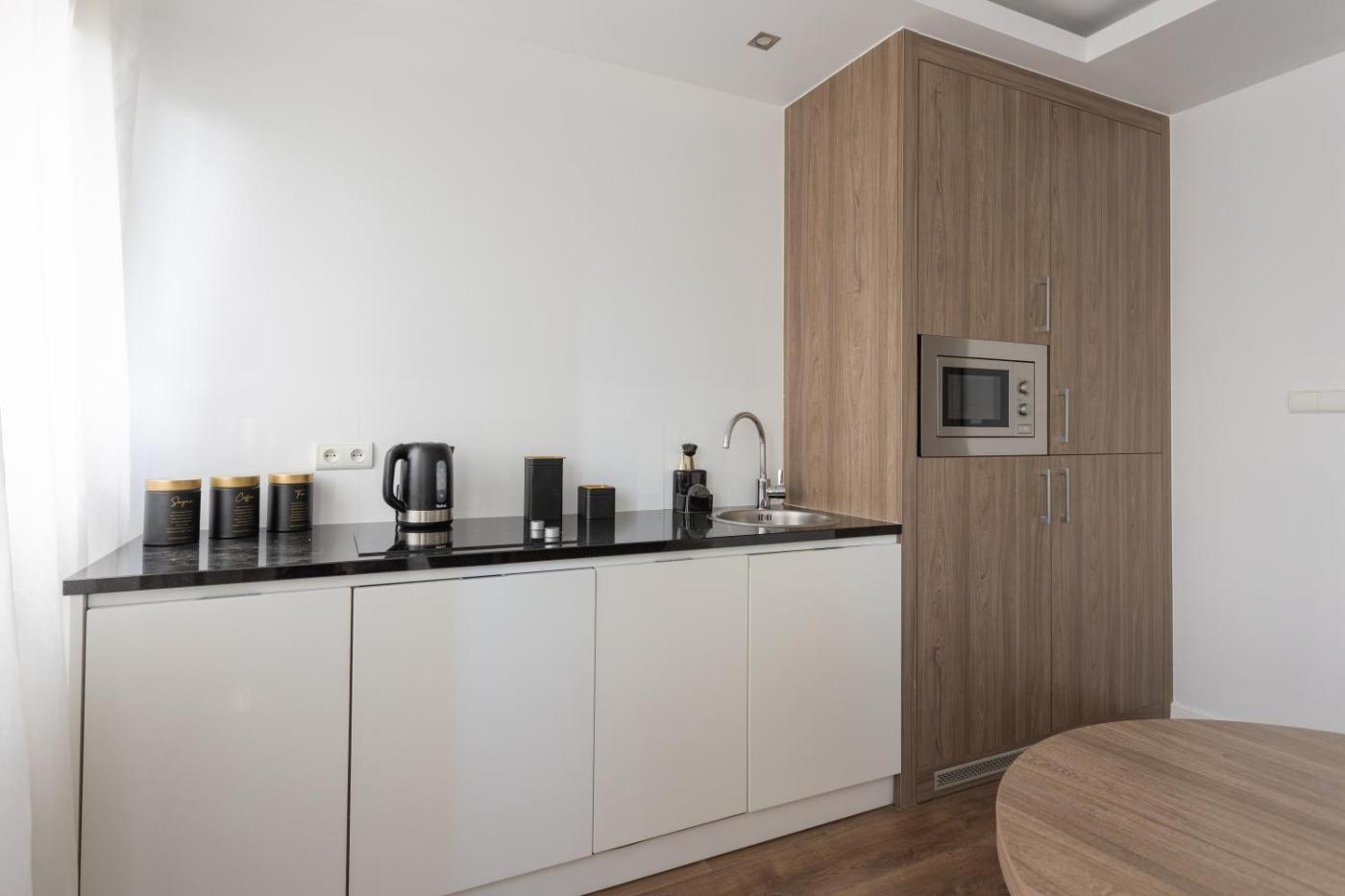 W apartamencie do dyspozycji gości przygotowano część wypoczynkową oraz kuchnię z mikrofalówką. Wyposażenie obejmuje też telewizor z płaskim ekranem z dostępem do kanałów kablowych. W apartamencie zapewniono ręczniki i pościel.
